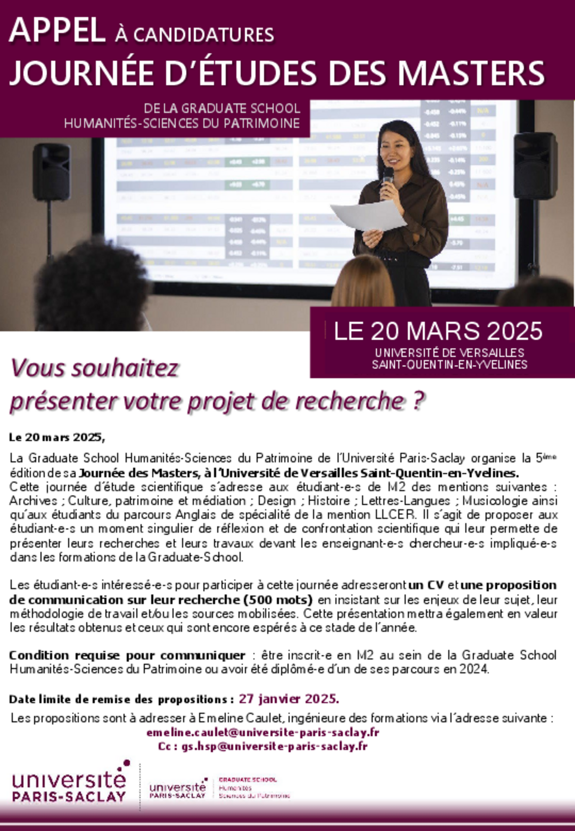 Vous souhaitez présenter votre projet de recherche ? Le 20 mars 2025, la Graduate School Humanités-Sciences du Patrimoine de l’Université…